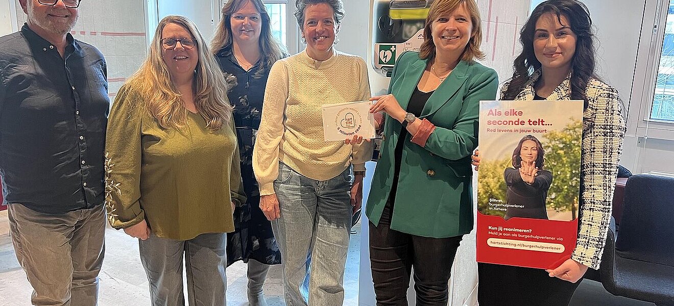 Wie in Almere een hartstilstand krijgt, kan overal in de gemeente binnen 6 minuten levensreddende hulp krijgen. Daarmee loopt Almere voorop als een van de gemeenten met een volledige 6-minutenzone. Om dit heugelijke feit te vieren, heeft oproepsysteem HartslagNu op 18 februari 2026 het bord ‘6-minutenzone hartveilig’ aan wethouder Nienke Nieuwenhuizen van Volksgezondheid overhandigd.