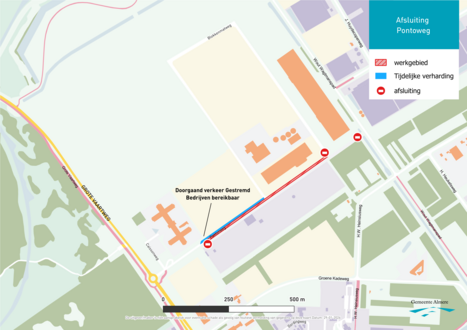Tijdens de uitvoering blijft de bereikbaarheid van bedrijven gewaarborgd via tijdelijke voorzieningen en omleidingen. De verkeersmaatregelen en bereikbaarheid worden per fase afgestemd en duidelijk aangegeven. Omleidingen worden met de bekende gele borden aangegeven.