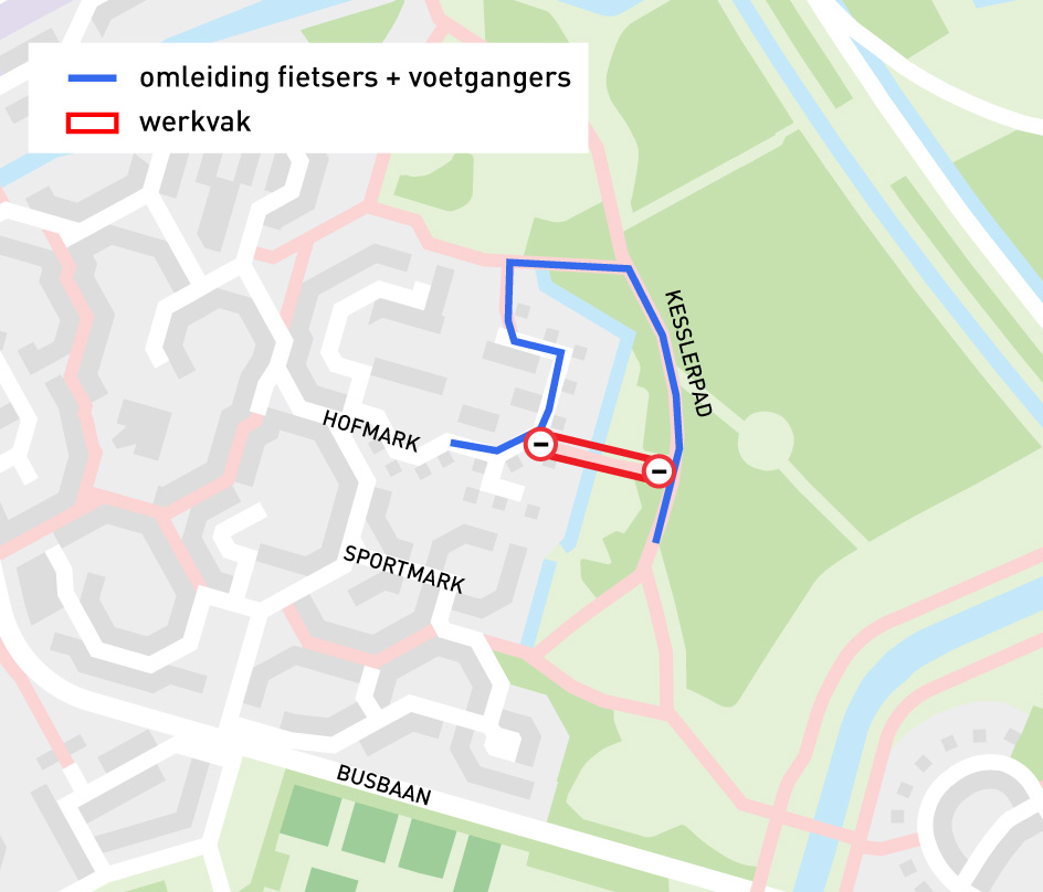 Tijdens de werkzaamheden is het fietspad tijdelijk afgesloten. Fietsers worden omgeleid met de bekende gele borden.