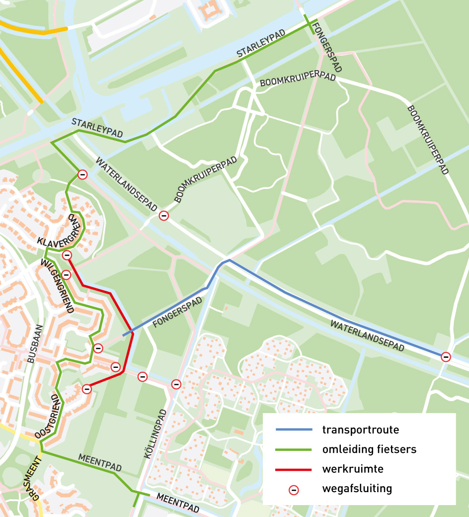 Tijdens de werkzaamheden zijn de fietspaden afgesloten. Fietsers worden omgeleid met de bekende gele omleidingsborden. De omleiding gaat onder andere via het Fongerspad en het MacMillanpad.