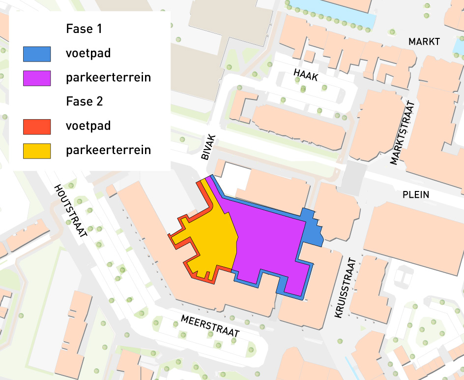 Tijdens de werkzaamheden is er steeds een deel van Bivak afgesloten voor auto’s en vrachtwagens. Bevoorrading van de winkels met klein vrachtverkeer kan via de Meerstraat.