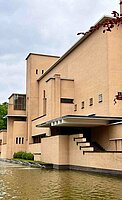 De bebouwing en het landschap vormen een ideaal samenspel in beeld, materiaal, kleurgebruik en tuininrichting. Het begeleidt mens en dier door het verbinden van stad met wijk, wijk met buurt, buurt met straat en zo verder tot in de afzonderlijke ruimtes van het gebouw. - Ontmoeting
