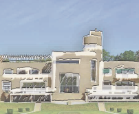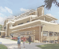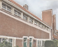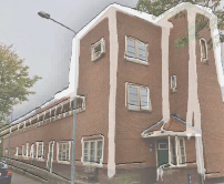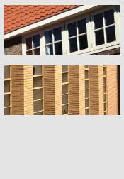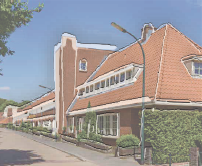 Link opent een vergroting van de afbeeldingDe vormgeving van de gevel versterkt de architectuur van lijnen, vlakken en ritme. Raampartijen zijn georganiseerd in de richting van de gevel of het volume. De gevelindeling heeft een logische verhouding die de geleding ondersteunt. Het metselwerk speelt hier ook een rol in, door met formaat, voegwerk en kleur de horizontaliteit te versterken. Ornamenten zijn sober en zijn een passend onderdeel van de architectuur.