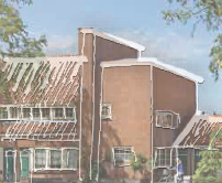 Link opent een vergroting van de afbeeldingDe gevels worden uitgevoerd in baksteen. In de ‘erven en hoven’ is het mogelijk om ook pleisterwerk toe te passen als secundair materiaal (minder dan 75%). Het kleurenpalet bestaat uit genuanceerde rood-, geel en beigetinten. Kleurkeuze en materiaal komen voort uit de locatie en het karakter van het bouwblok of ensemble. Zadeldaken zijn rood of zwart, waarbij dakranden en overstekken een lichte kleur hebben – of een kleur die de horizontaliteit versterkt.