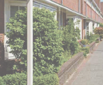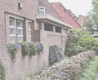 Link opent een vergroting van de afbeeldingRuimere voortuinen, met een diepte van meer dan 1,5 meter hebben, afhankelijk van de voorschriften, een erfafscheiding in een vorm van een gemetseld muurtje of een haag (maximaal 1 meter hoog). Ondiepere voortuinen, met een diepte van minder dan 1,5 meter, hebben een ‘Delftse stoep’ in een consistent bestratingsmateriaal langs het bouwblok.